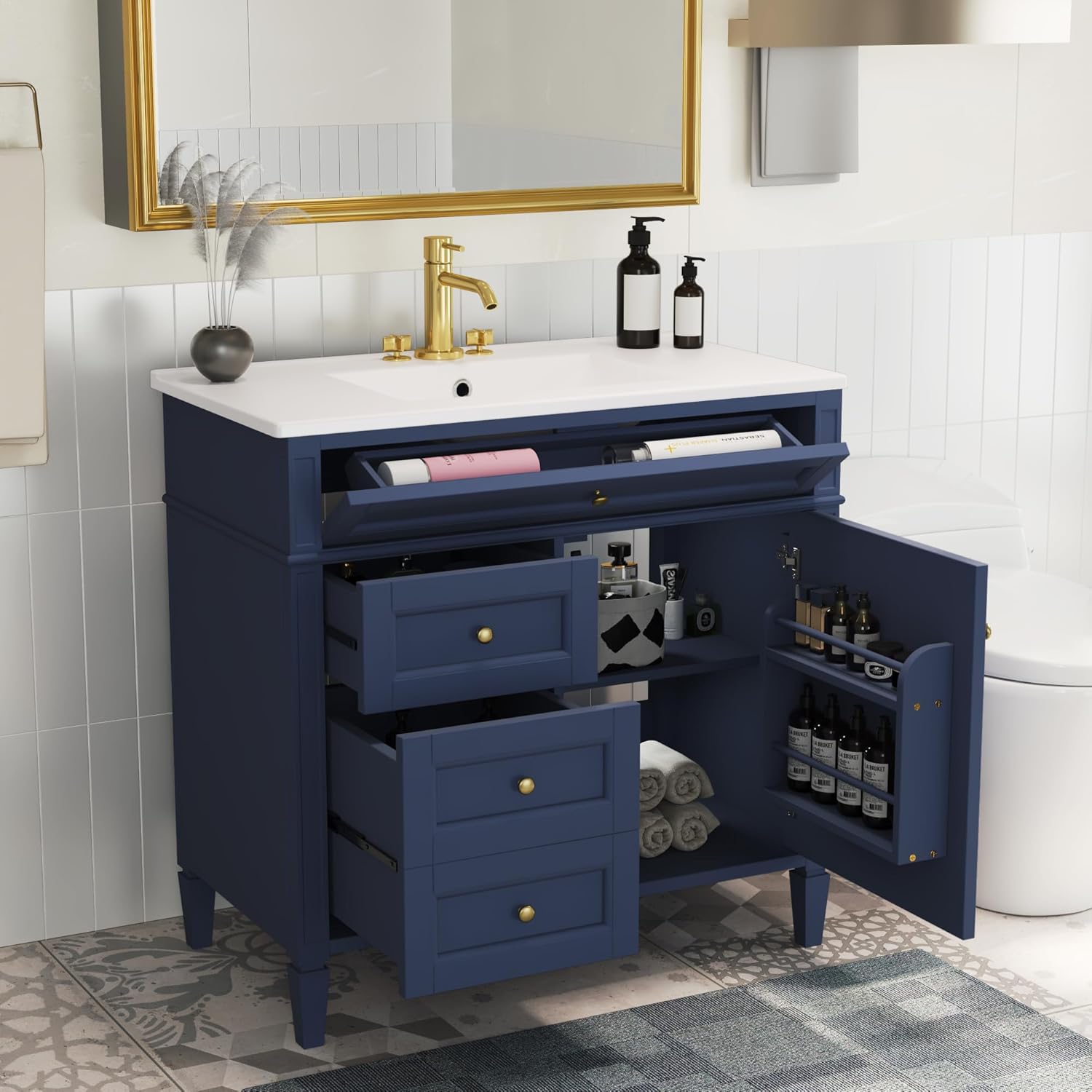 Image 1.1: Virubi 36-inch Bathroom Vanity with Storage Open