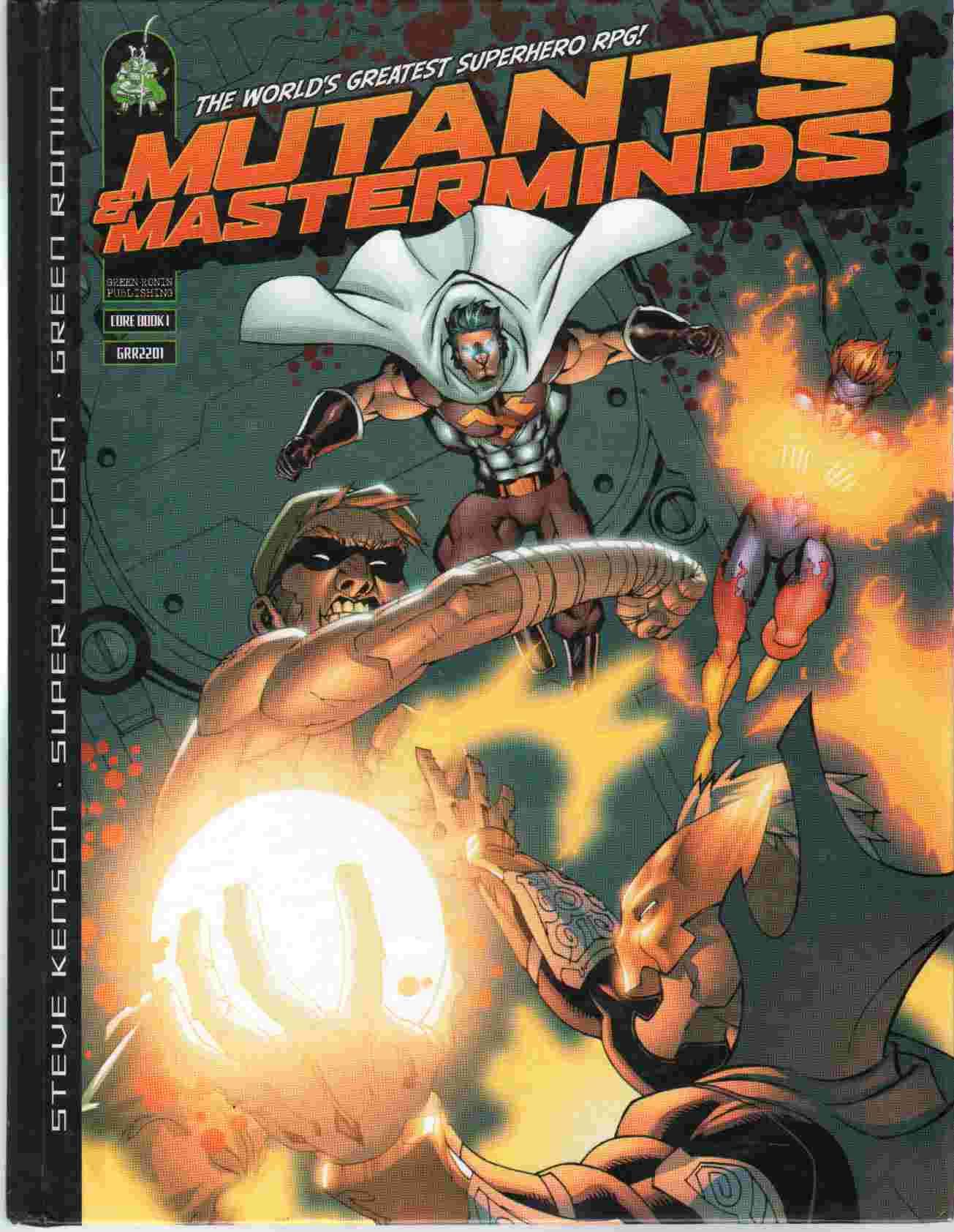 Image: The cover of the Mutants & Masterminds RPG 1st Edition rulebook, featuring superhero artwork.
