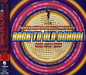 Image 2.1: Front cover of the 76.1 Mhz Inter FM Super Duper Jungle Pre Audio CD. The cover displays the title "BACK TO OLD SCHOOL" prominently, with "SUPER DUPER JUNGLE PRESENTS" above it. The background features concentric circles in shades of orange and purple, with various track titles and artist names spiraling outwards.