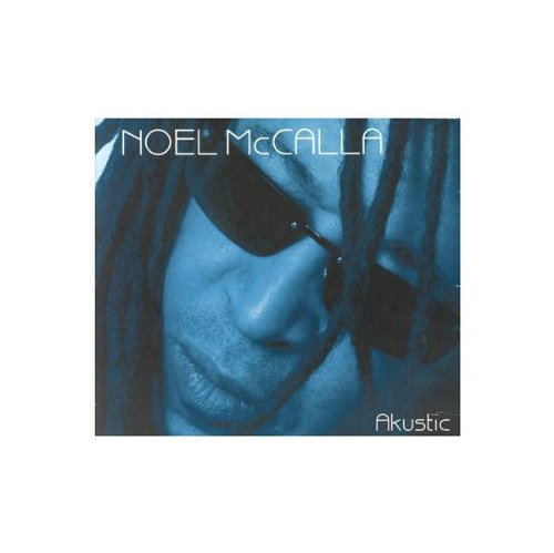 This image displays the album cover for 'Akustic' by Noel Mccalla. The cover features a close-up of Noel Mccalla's face, partially obscured by dark sunglasses, with dreadlocks visible. The image is rendered in a blue monochrome tone. The artist's name 'NOEL McCALLA' is prominently displayed in the upper left corner, and the album title 'Akustic' is in the lower right corner.