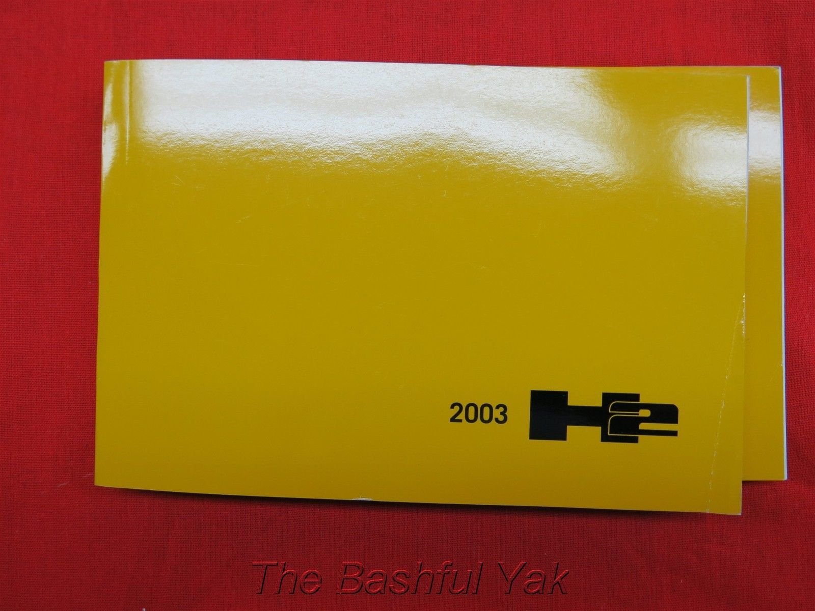 Image: Front cover of the 2003 Hummer H2 Owner's Manual. This image displays the official manual for the vehicle, indicating its purpose as a guide for owners.