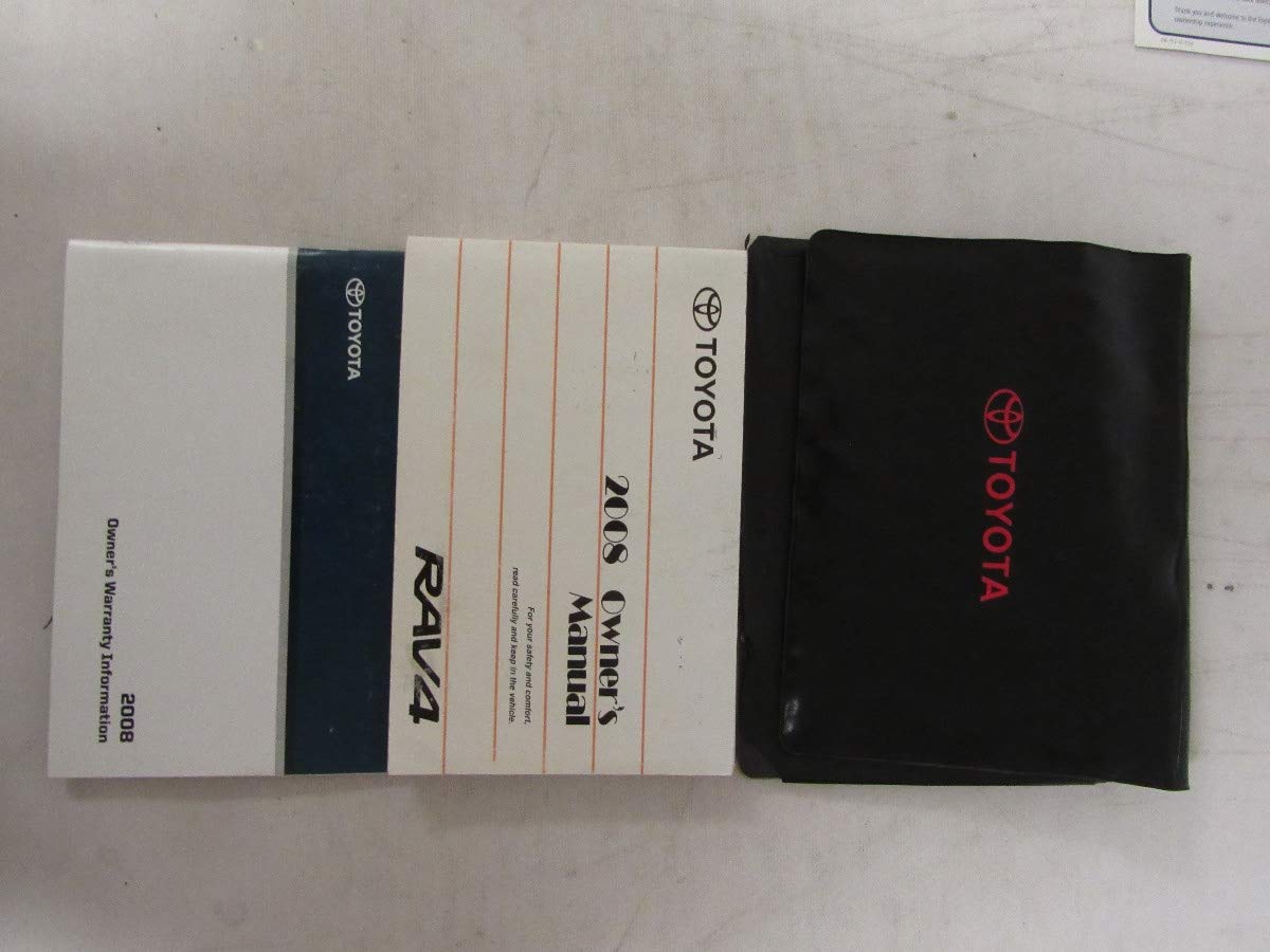 Image: The black case containing the 2008 Toyota RAV4 Owner's Manual and supplementary documents, featuring the Toyota logo.