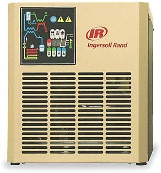 Figure 1: Front view of the Ingersoll Rand D18IN Compressed Air Dryer. The unit is beige with a black control panel on the top left and a large ventilation grille covering the lower front.