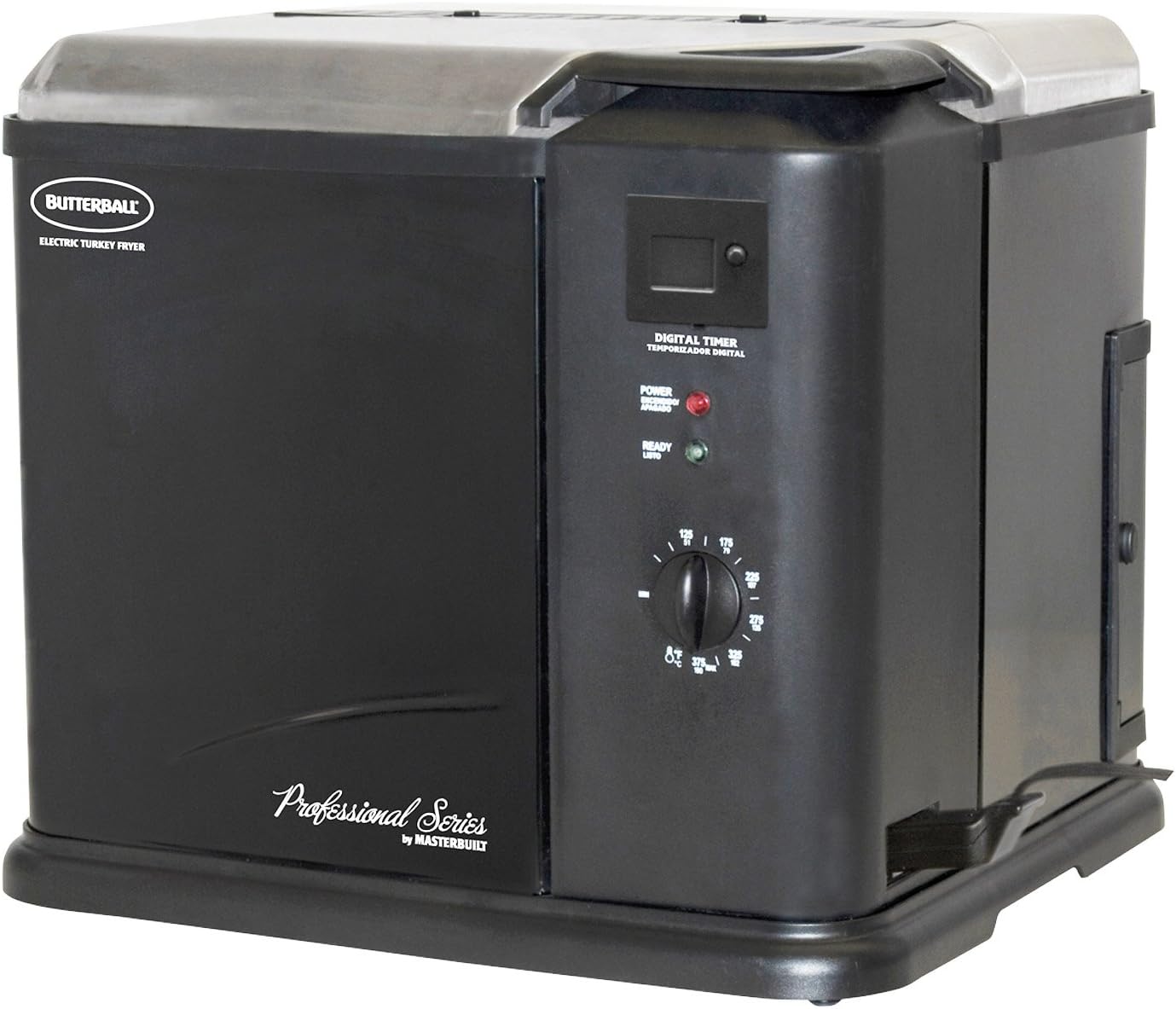 Figure 1.1: The Masterbuilt Butterball Professional Series Indoor Electric Turkey Fryer, showcasing its black finish and control panel.
