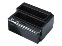 Figure 1: Digitus DA-70544 SATA Docking Station. This image shows the top-down view of the black docking station with two slots for SATA drives and front-facing indicator lights and buttons.