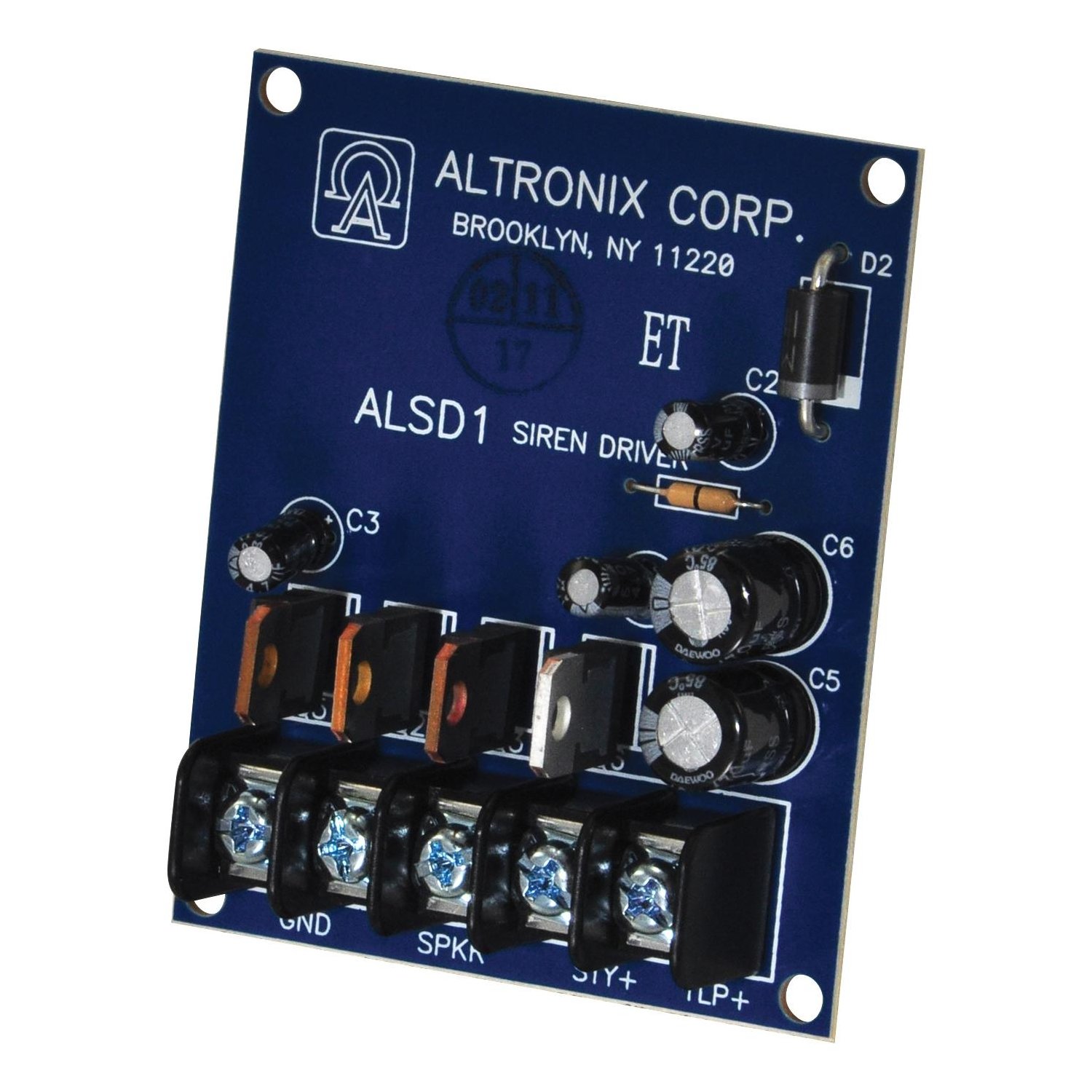 Figure 1: Front view of the Altronix ALSD1 Siren Driver, showing its compact design and connection terminals.