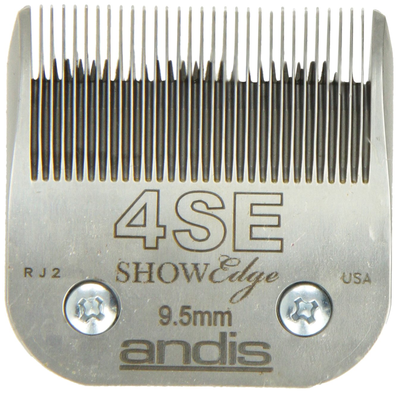 The Andis Pet No.4SE Blade Set is a high-quality, chrome-plated, carbon-steel detachable blade designed for professional and home pet grooming. This blade is engineered with SHOWEdge technology to provide a smooth finish on a pet's coat, reducing the need for multiple passes. It leaves hair at a length of 3/8 inch (9.5mm).