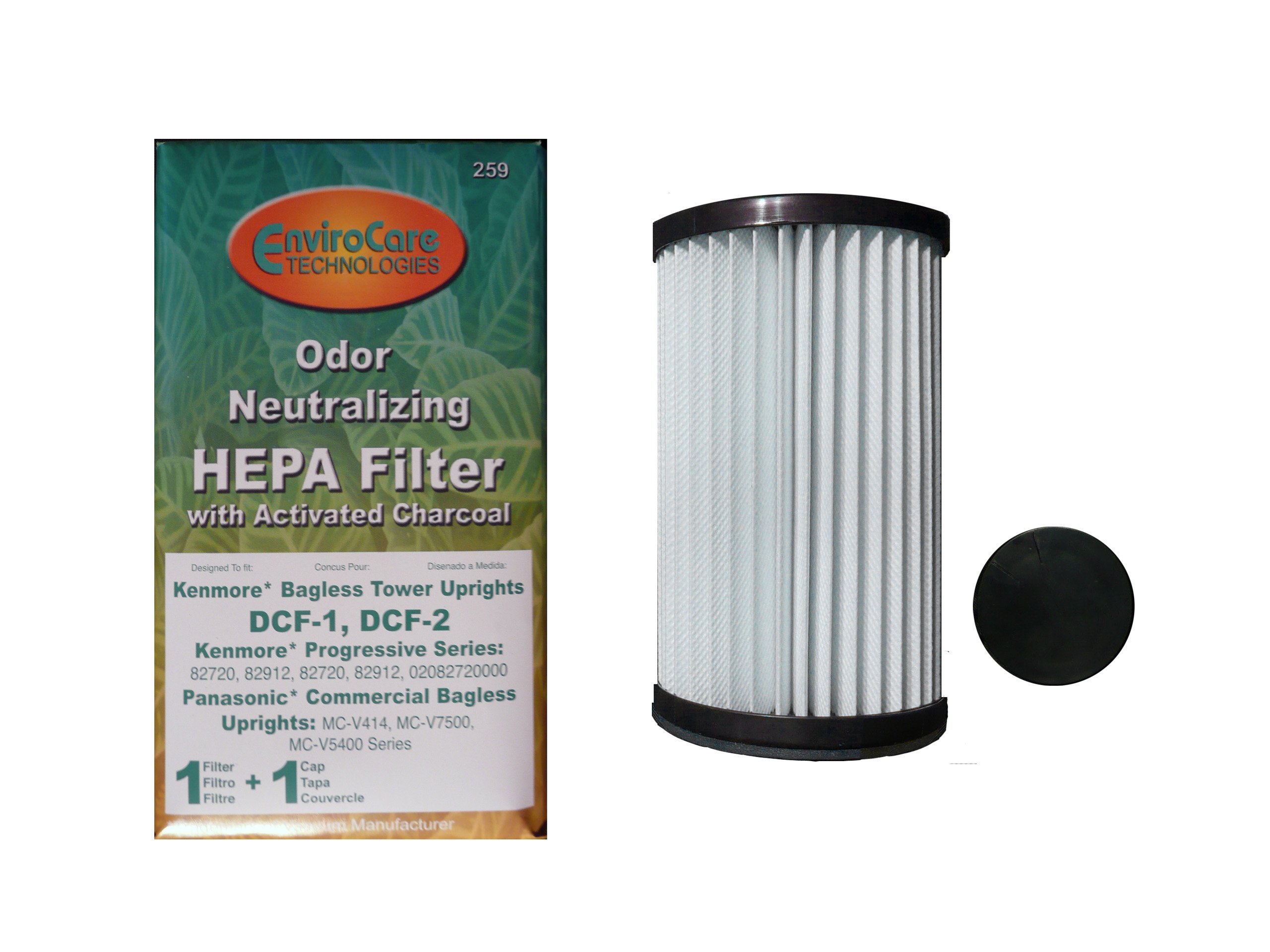 The EnviroCare Replacement Tower HEPA Vacuum Filters are designed to provide superior filtration for Kenmore Progressive Bagless Uprights and compatible Panasonic Commercial bagless vacuum models. These filters are crucial for maintaining the performance of your vacuum cleaner and ensuring a cleaner home environment by trapping microscopic particles and allergens.