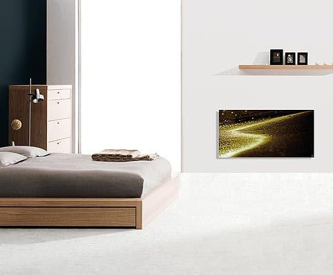 Image: Climastar CR-LUX 1500w Space Heater installed in a bedroom, demonstrating its sleek, wall-mounted design.