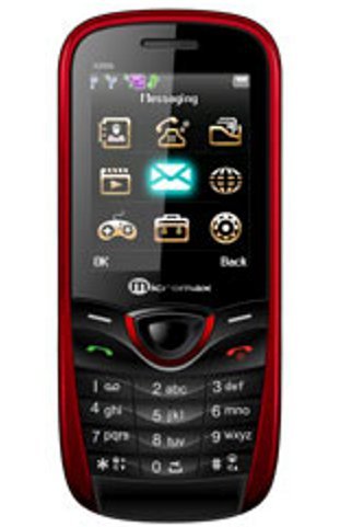 Image: Front view of the Micromax X266 mobile phone, showcasing its red and black design, display screen with application icons, and the physical keypad below.