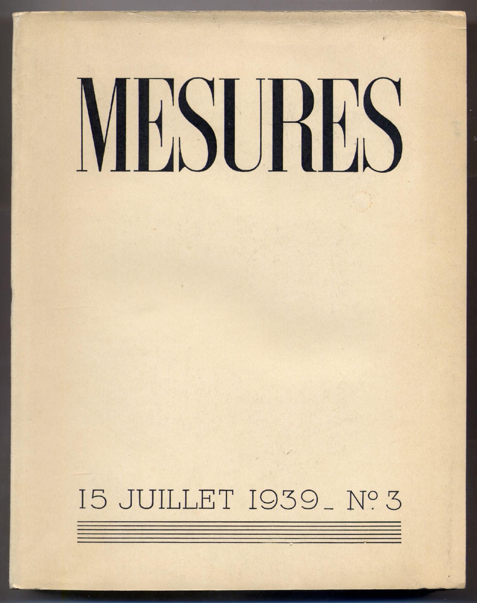 Image 1.1: The front cover of "Mesures 3," featuring the title and publication date. This image illustrates the physical appearance of the paperback edition.