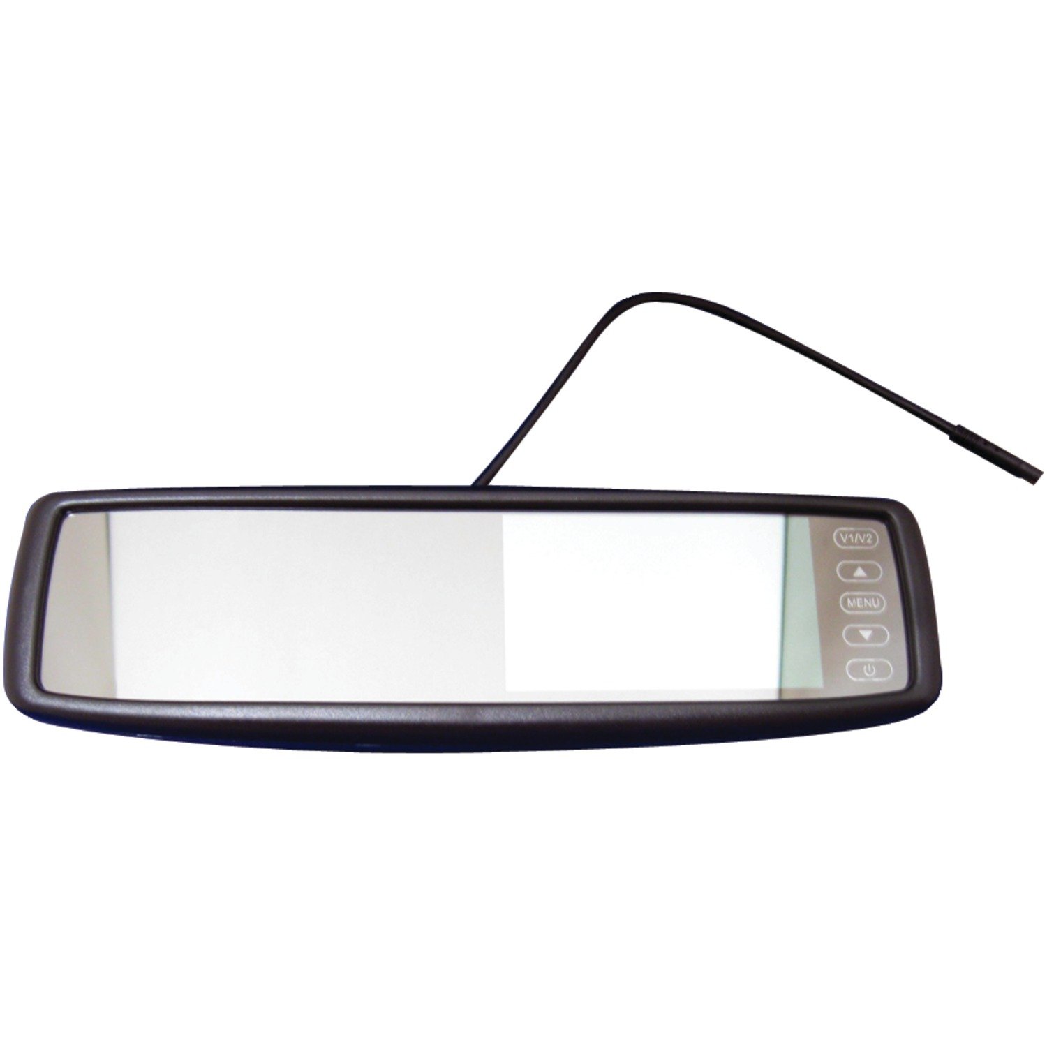 | No image on display. | No power to the mirror; loose video cable connection; faulty video source; incorrect input selected. | Check power connections and vehicle fuse. Ensure video cables are securely connected. Verify video source is operational. Press V1/V2 button to cycle inputs. |