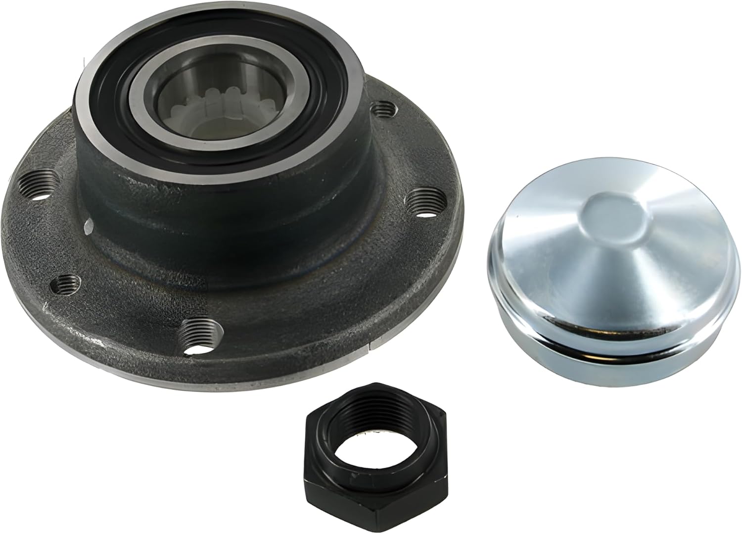 Image 1: Main components of the SKF VKBA 1440 Wheel Bearing Kit, including the bearing unit, nut, and dust cap.