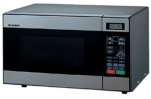 This image shows the Sharp R-299 Microwave Oven, featuring its stainless steel exterior and control panel.