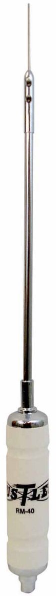 - Whip Installation: Attach the appropriate Hustler whip (sold separately) to the top of the RM-40 resonator. The whip length is critical for fine-tuning the antenna.