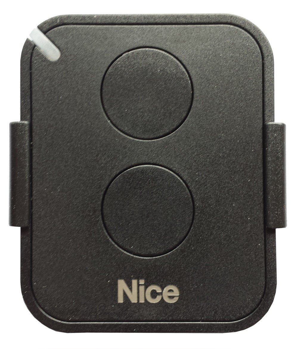 The NICE FLO 2RE is a compact and ergonomic remote control designed for operating gate and garage door systems. It transmits on a frequency of 433.92 MHz and features two buttons for controlling different functions. This manual provides essential information for the proper setup, operation, and maintenance of your remote control.