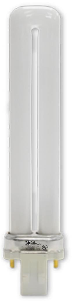 Image: Goodlite G-20124 13-watt Compact Fluorescent Plug-In 2-Pin Light Bulb. This image illustrates the general appearance of the bulb, featuring its compact fluorescent design and 2-pin base.