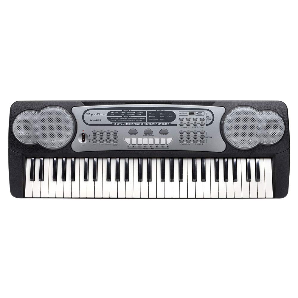 Image: The Spectrum AIL 439 54-Note Electric Keyboard, featuring 54 keys and an integrated music stand.