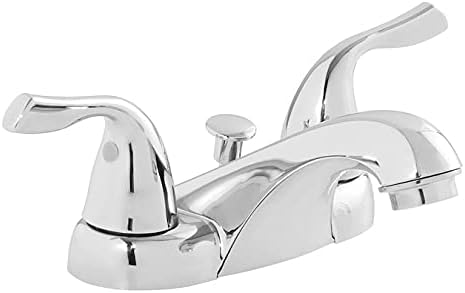 The Project Source Chrome 2-Handle 4-in Centerset WaterSense Bathroom Sink Faucet is designed for both home and RV use, offering a modern aesthetic with practical features.