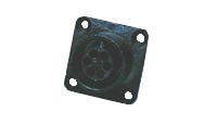 A black, square-shaped TE 864900-2 6 Position Receptacle Circular Connector, designed for panel mounting, showing the six internal contact points.