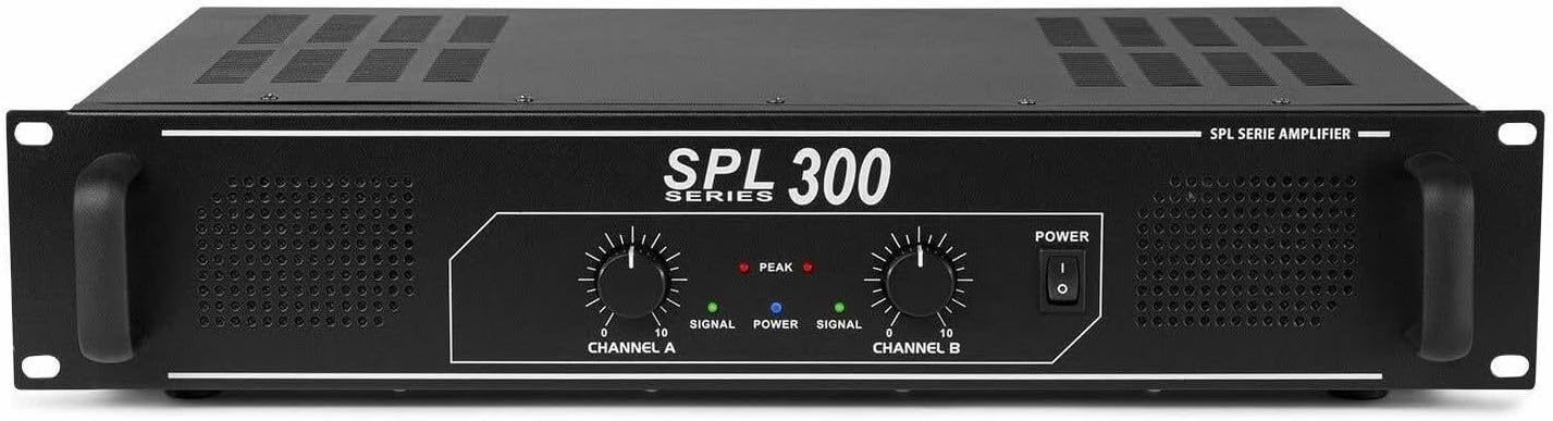 The SkyTec SPL300 is a semi-professional stereo PA amplifier designed for various audio applications, including small DJ setups, home parties, and public address systems. It delivers a maximum output of 2 x 150 watts at 4 ohms, providing clear and powerful sound. This amplifier features separate volume controls for each channel and a peak indicator to prevent signal overload. Its robust 19-inch rack-mountable design ensures durability and ease of integration into existing setups.