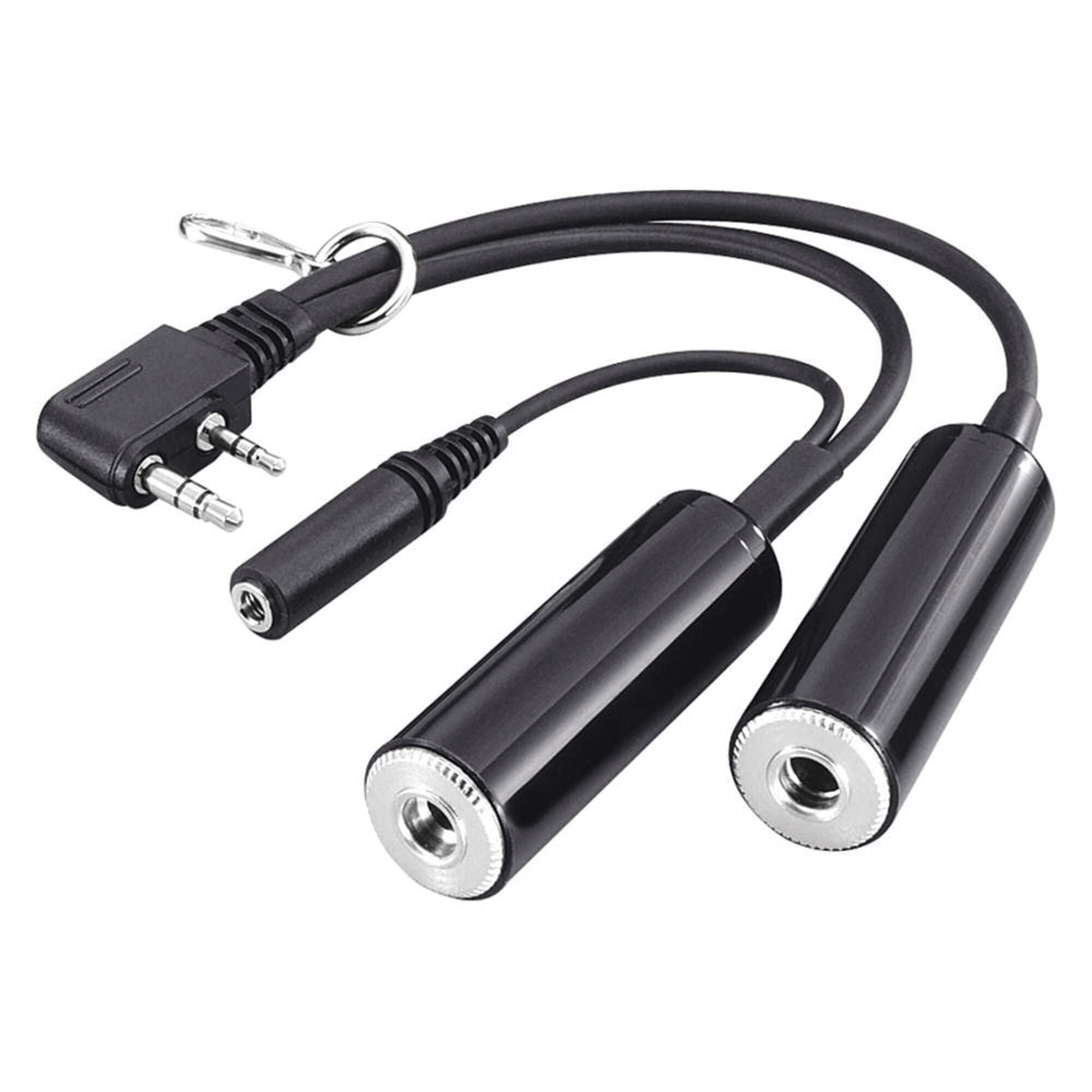 - Connect Headset: Insert the headphone plug from your aviation headset into the larger jack on the OPC-499 adapter. Insert the microphone plug from your aviation headset into the smaller jack on the OPC-499 adapter. Ensure both connections are secure.