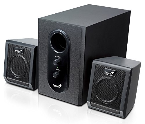 The Genius SW-2.1 355 Speaker System consists of a subwoofer and two satellite speakers designed to deliver clear audio and powerful bass for your multimedia needs.