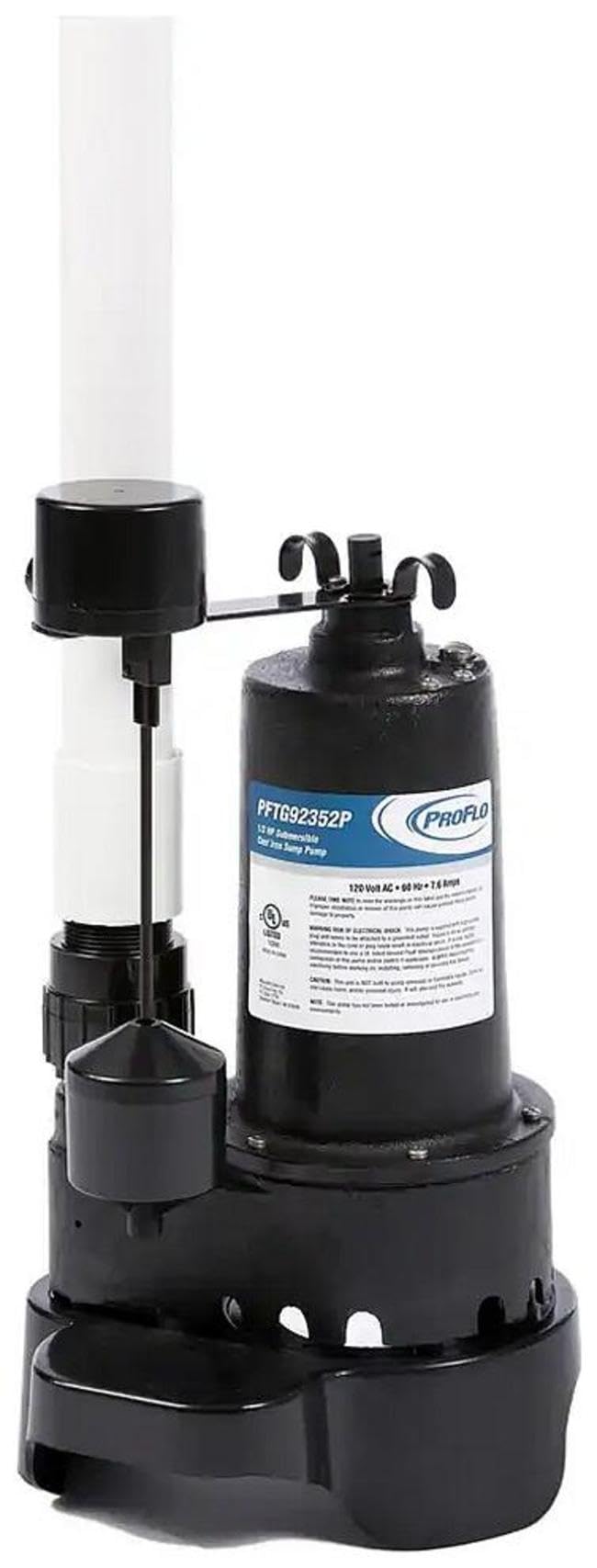 Image 1.1: The PROFLO PFTG92352P 1/3 HP Cast Iron Submersible Sump Pump, featuring a robust cast iron body and an integrated vertical float switch for automatic operation.