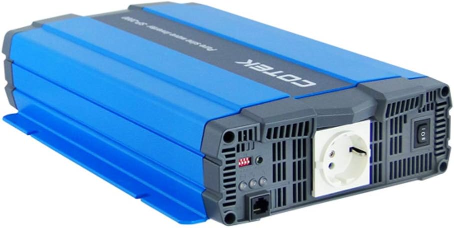 Figure 4.1: Angled view of the COTEC SP2000-224 Pure Sine Wave Inverter, showcasing its robust blue and gray casing.