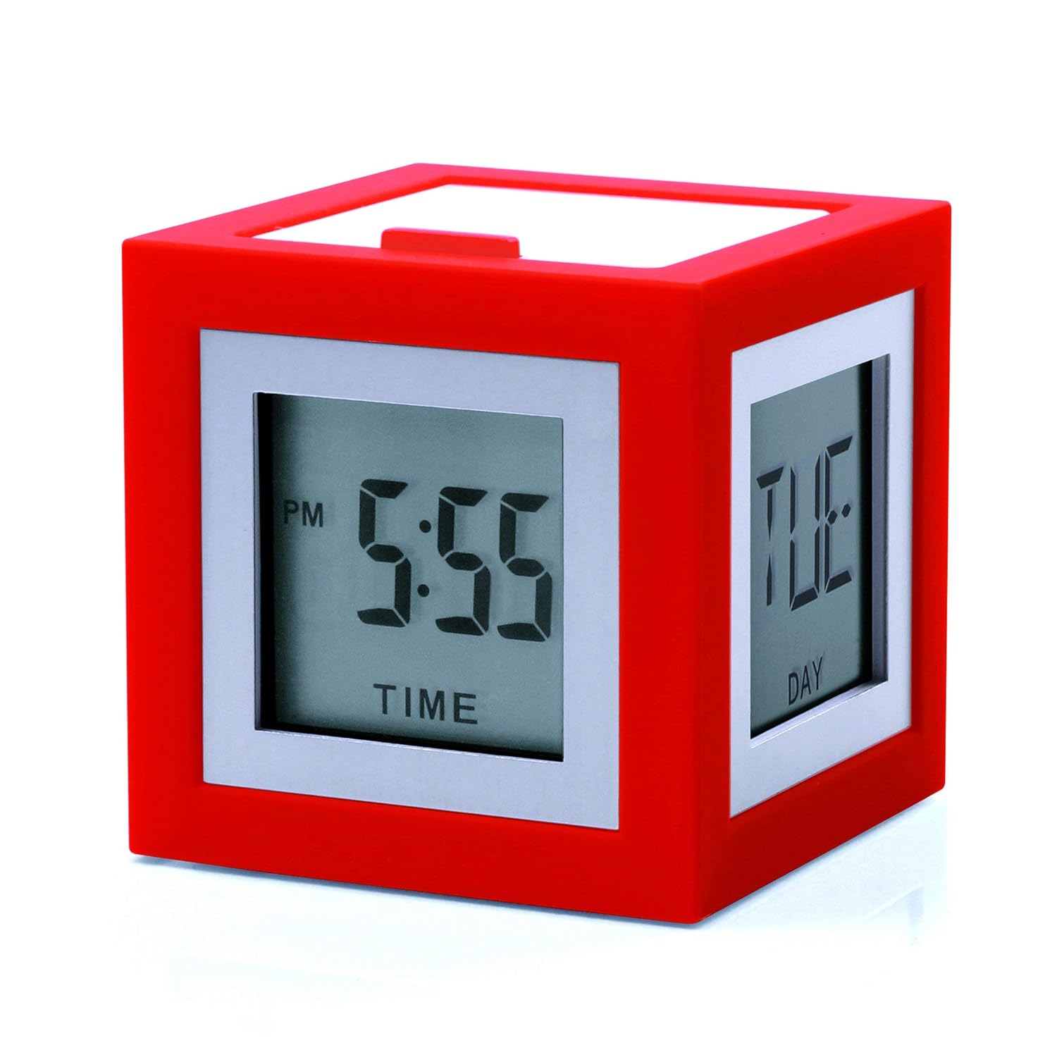 The Lexon Cubissimo is a compact alarm clock featuring an LCD display. Its unique cube design allows for intuitive interaction. The device is constructed from Acrylonitrile Butadiene Styrene (ABS) and aluminum, offering durability and a modern aesthetic.