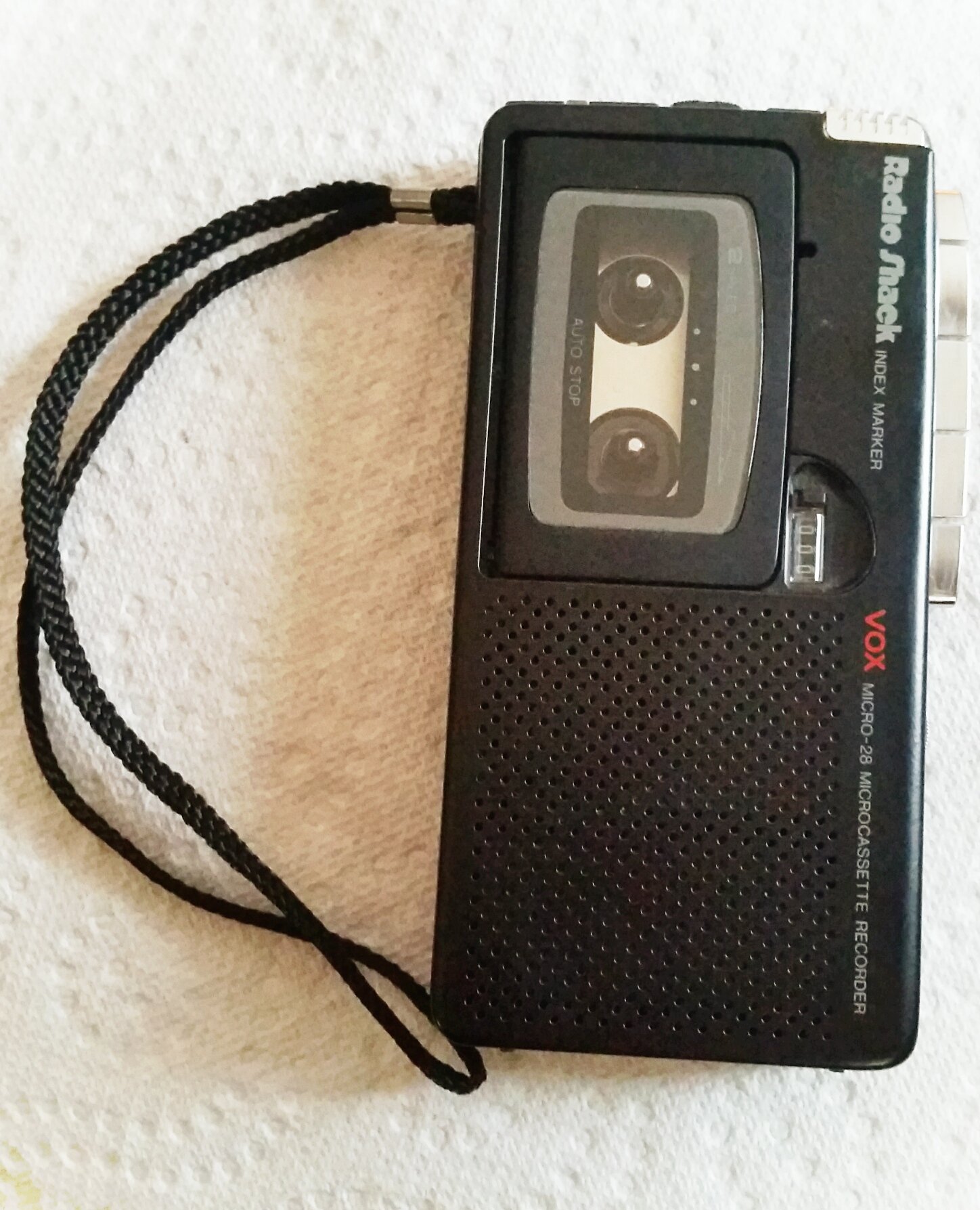Figure 1: RadioShack VOX Micro-28 Micro Cassette Recorder. This image displays the front of the recorder, showing the microphone, speaker, and control buttons.