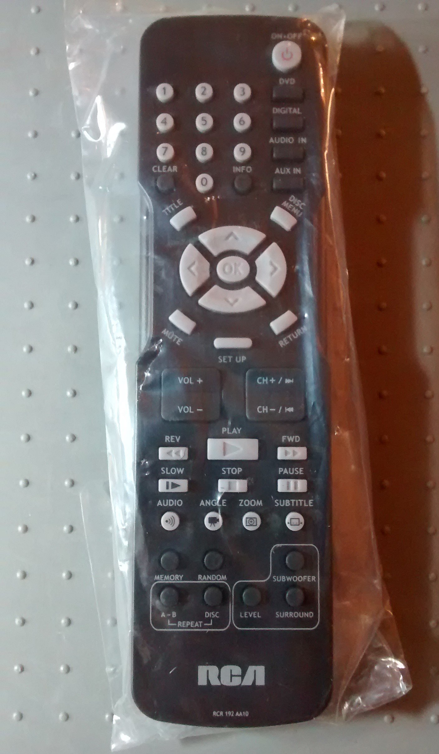 Image: The RCA Remote Control RCR 192AA10, shown sealed in its clear plastic packaging.
