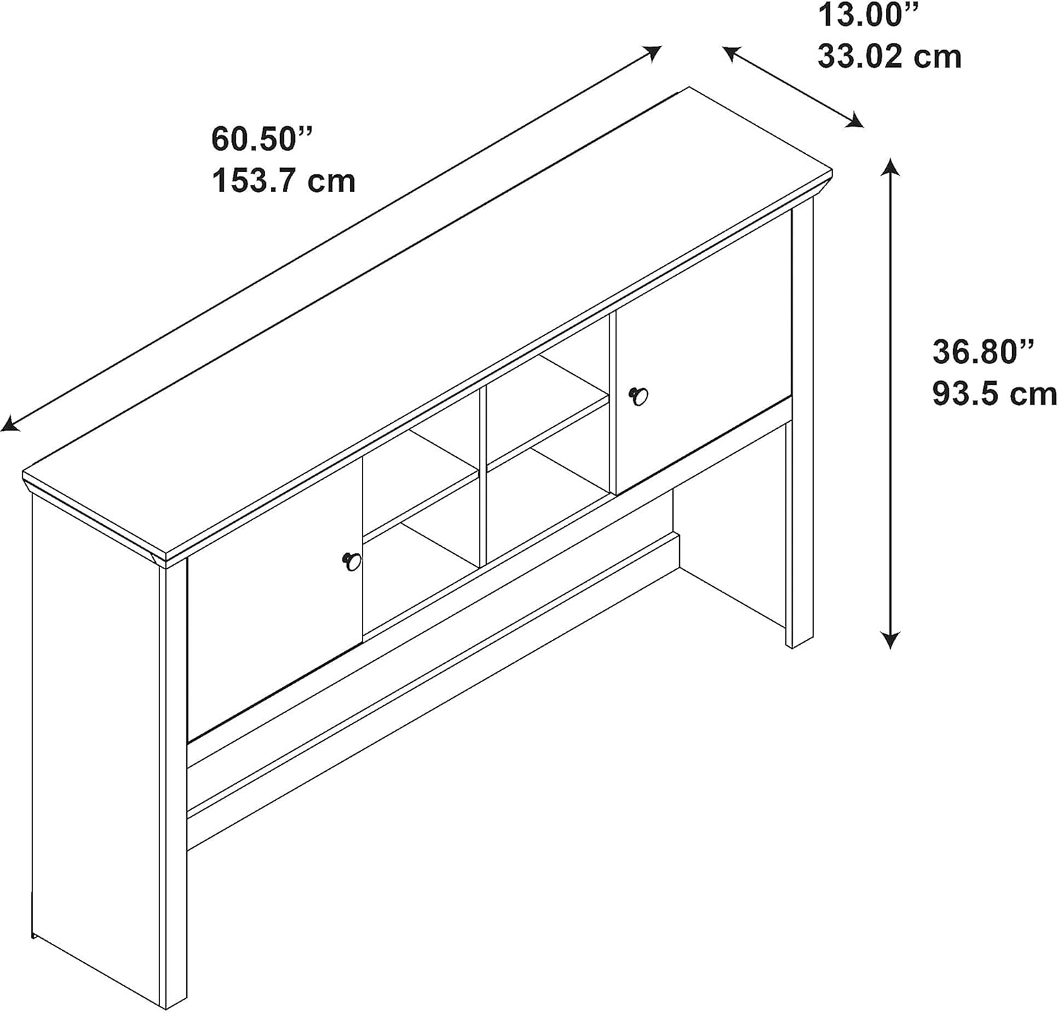 Image: Dimensions of the Yorktown 60W Desk Hutch.