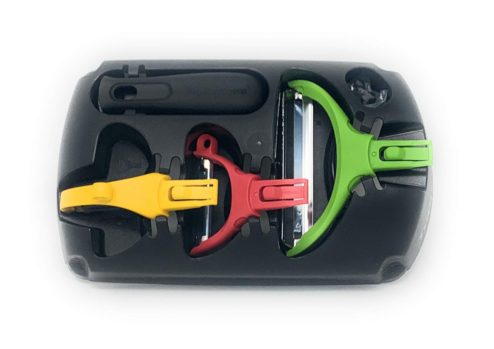 - Storage: Store the peeler heads and handle in the provided holder to protect the blades and keep the set organized. Keep out of reach of children.