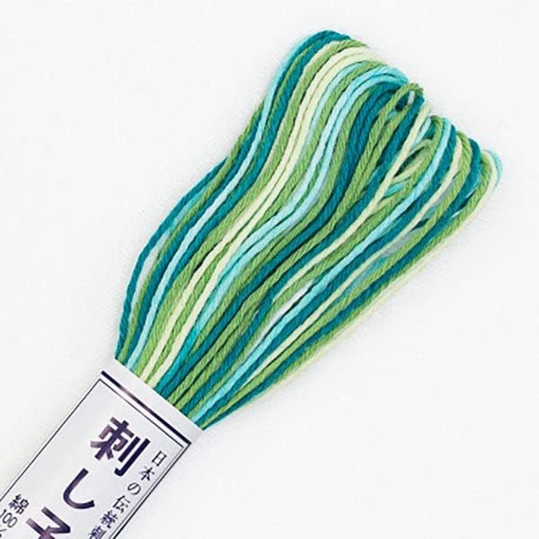 The Shibori Dragon Sashiko Thread is crafted from 100% cotton, specifically developed to enhance the natural beauty of Sashiko stitching. Its unique composition minimizes fluffing, resulting in clean, beautiful, and slightly fluffy stitches. Each skein contains 20 meters of thread, making it versatile for both small and large projects. The variegated green color (Model 51-Vari) provides a dynamic visual effect.