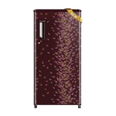 Image: Front view of the Whirlpool 190 L Direct-Cool Single Door Refrigerator in Wine Fiesta finish. This model features a modern design with a patterned door.