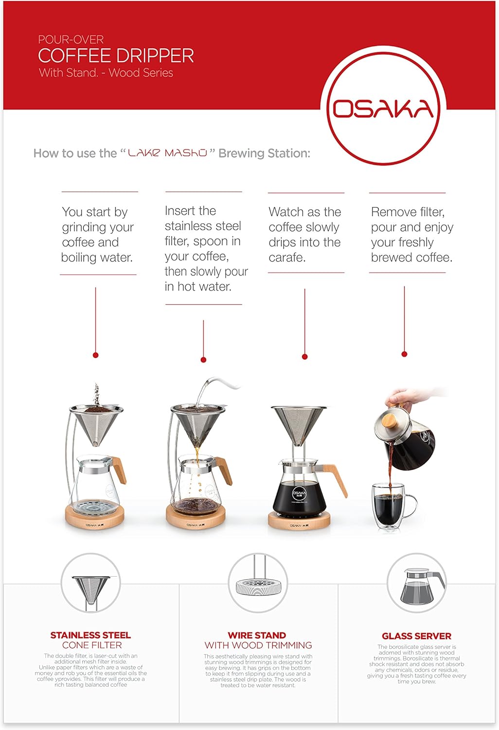 Thank you for choosing the Osaka Lake Mashu Pour-Over Coffee Dripper. This manual provides detailed instructions for the proper setup, operation, and maintenance of your new coffee brewing system. Designed for a rich and smooth coffee experience, this pour-over set combines functionality with elegant design.