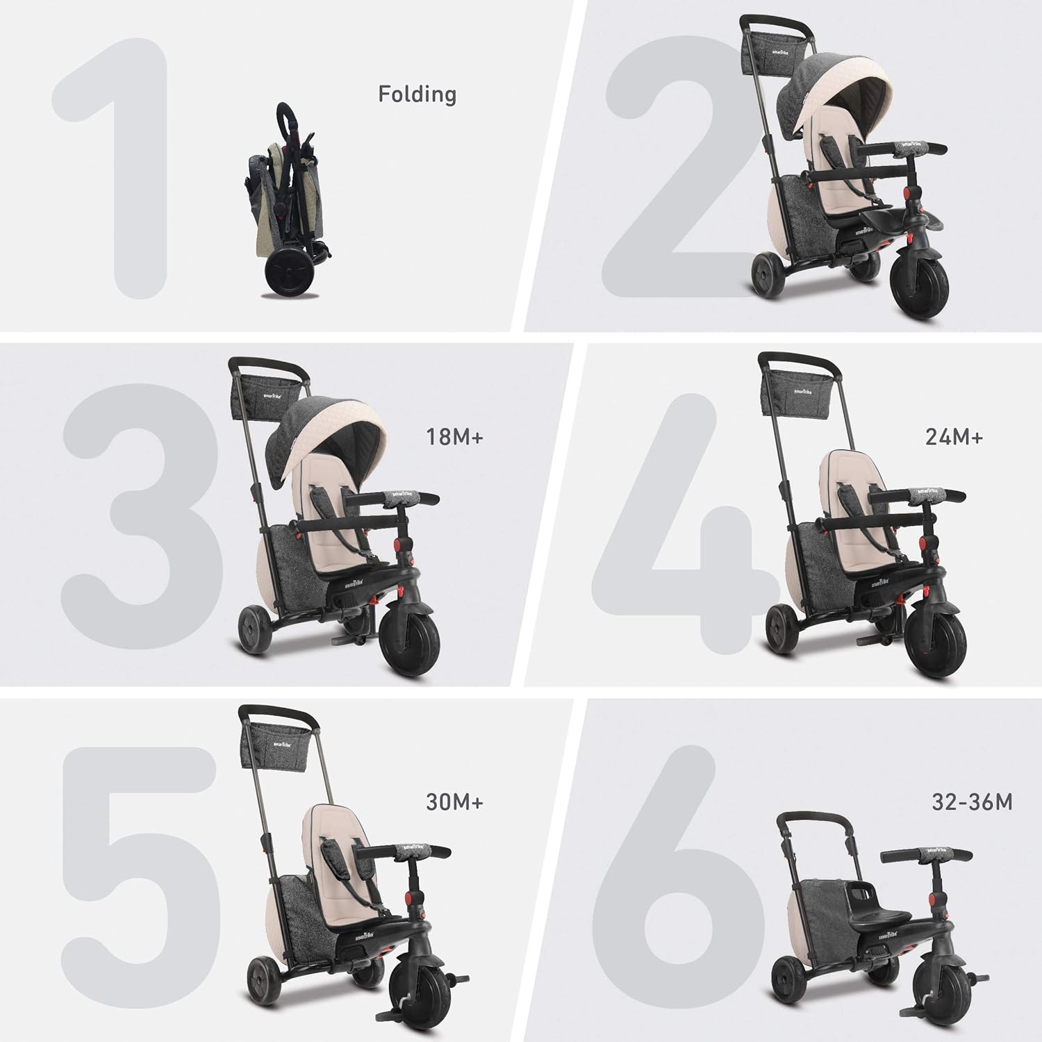 - Stage 6: Independent Tricycle with Parent Handle (30 Months Old)