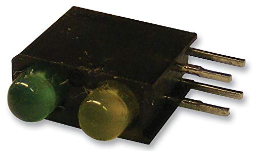 The Dialight 553 Series LED Circuit Board Inductor is a compact electronic component designed for direct mounting onto circuit boards. It features two LEDs, one yellow and one green, providing dual-color indication. The design incorporates an 80-degree viewing angle and operates efficiently at 10 mA.