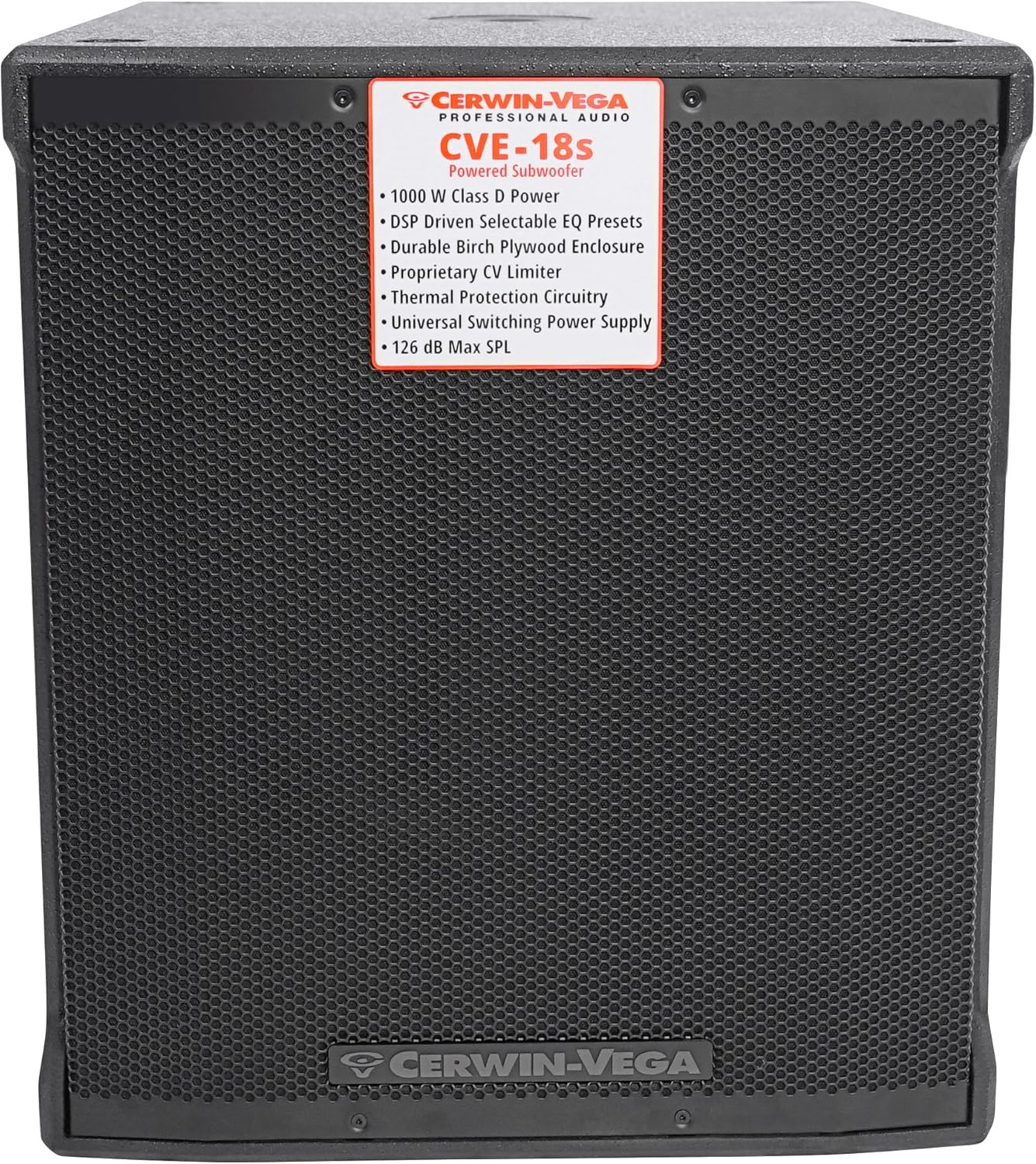 Thank you for choosing the Cerwin Vega CVE-18s Powered Subwoofer. This 18-inch, 1000-watt Class D powered subwoofer is designed to deliver powerful low-frequency sound for various applications, including live performances, DJing, and fixed installations. It features two Combo XLR/TRS inputs, one XLR output, two DSP-driven modes for sound tailoring, and Bluetooth audio streaming capabilities, offering up to 126dB of maximum SPL. This manual provides essential information for the safe and efficient operation of your CVE-18s subwoofer.