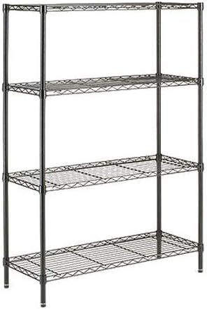 This shelving unit is designed for organizing items in various indoor environments such as garages, utility rooms, offices, and pantries. It features a durable wire construction and a black finish, offering a practical storage solution.