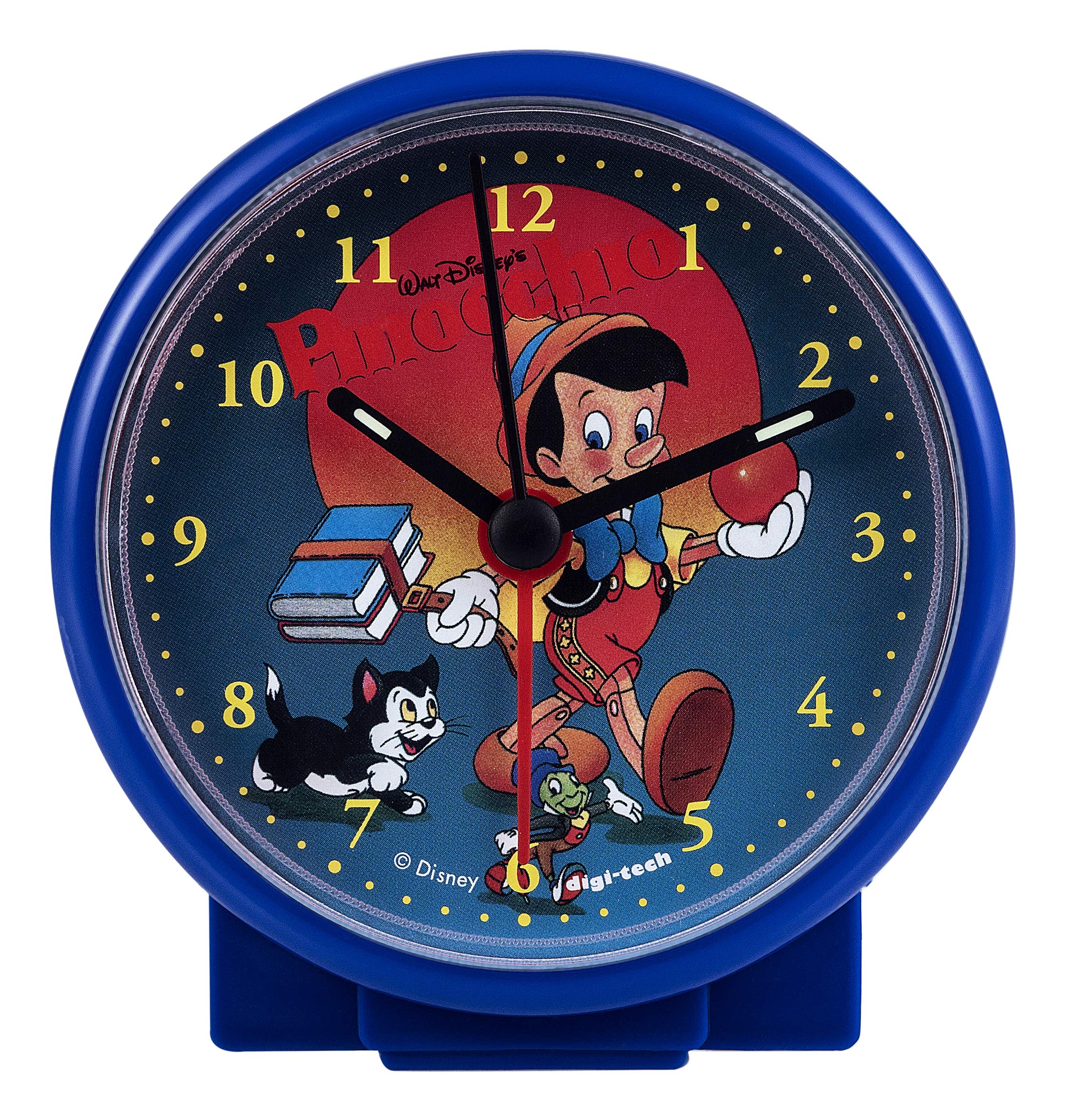 The DigiTech 2-Tech WD-4379 is a portable, battery-powered alarm clock featuring an analog display with a Pinocchio dial. Its compact design makes it suitable for various indoor settings, including bedrooms and travel.