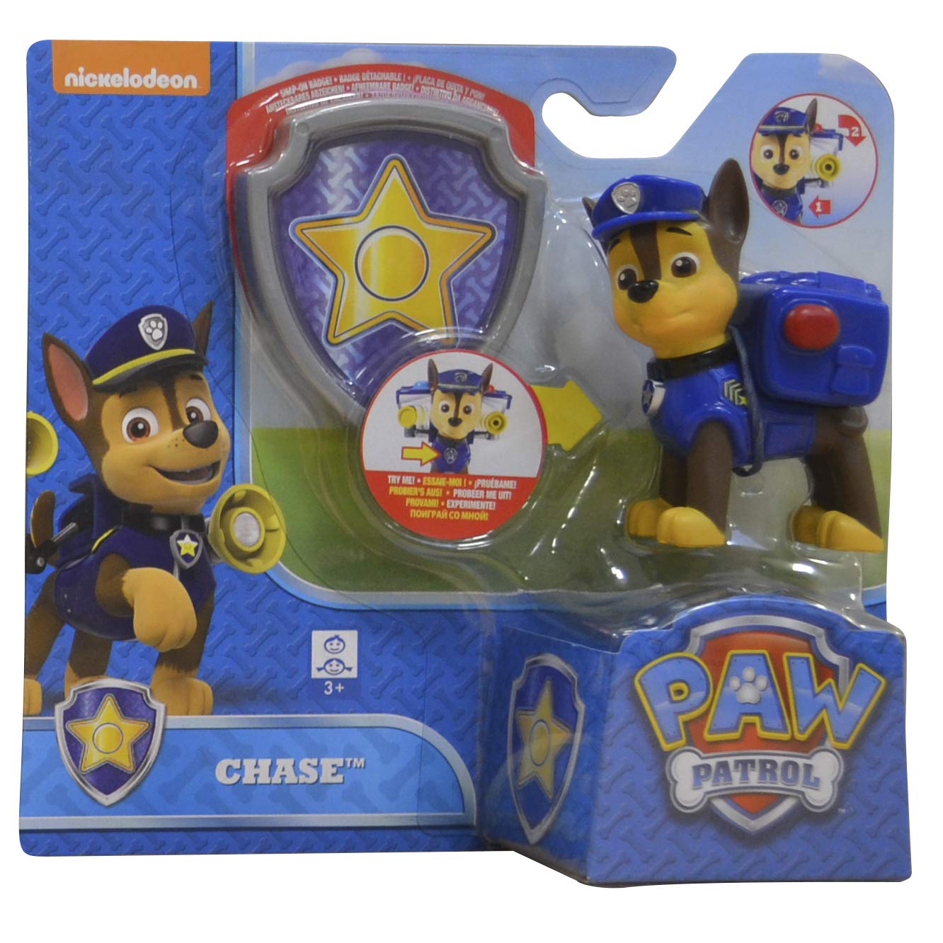 Image: Spin Master Paw Patrol Action Figure (Model 6022626). This image shows the action figure in its standard pose, highlighting the locket on its chest which activates the transforming backpack feature.