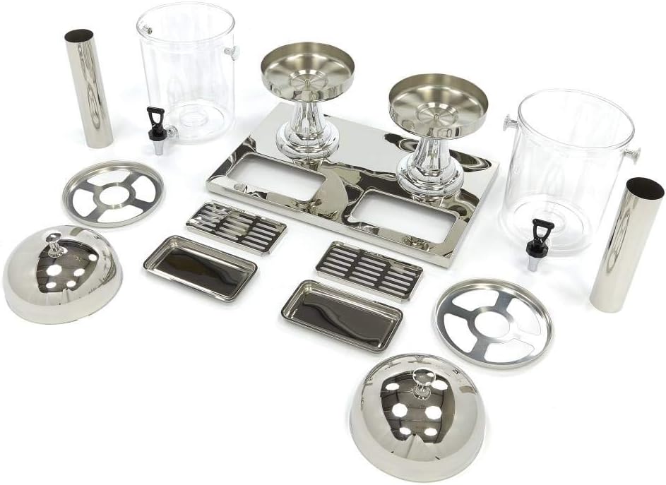 - A sturdy stainless steel base with two integrated drip trays.