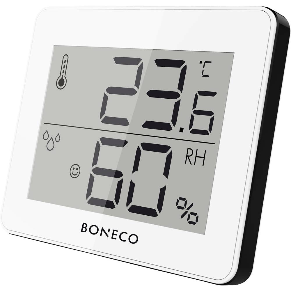 The Boneco X200 Thermo-Hygrometer is designed to accurately monitor the ambient temperature and relative humidity in your indoor environment. This compact and easy-to-use device helps you maintain an ideal indoor climate for comfort and health.