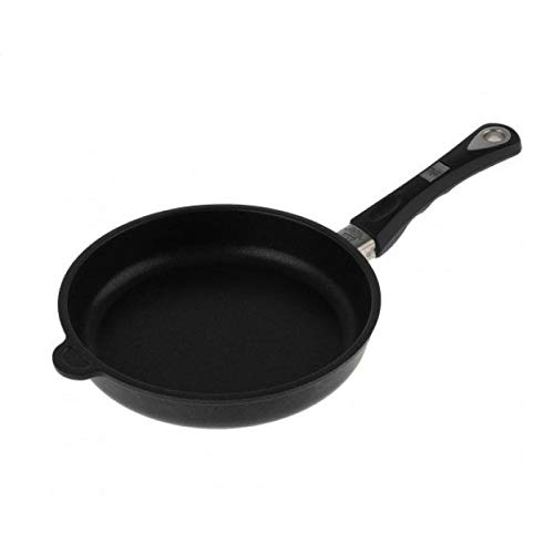 The AMT 524-E-Z30-PL Frying Pan is a high-quality, hand-casted aluminum pan designed for efficient cooking. It features a durable non-stick coating and an exclusive long handle for comfortable use. This pan is manufactured in Germany, ensuring robust construction and performance.