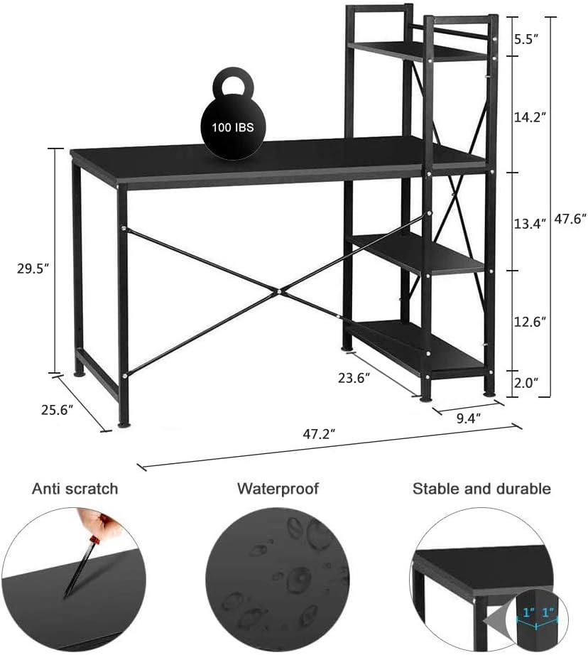 - Desktop Use: The spacious desktop (47.2''L x 25.6''W) is suitable for computers, laptops, and other work essentials. It has a maximum weight capacity of 100 pounds.