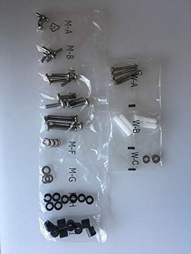 Figure 3.1: Assorted hardware for the Mount Plus OB-600, including various screws, washers, and wall anchors, organized in labeled bags.