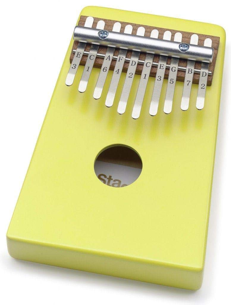 The Stagg KALI-KID10-YW Kalimba is an entertaining and safe musical instrument designed to introduce children and beginners to rhythm and melody. By striking its 10 steel keys with your thumbs, you can produce pleasant and melodic sounds, rich in warm tones.