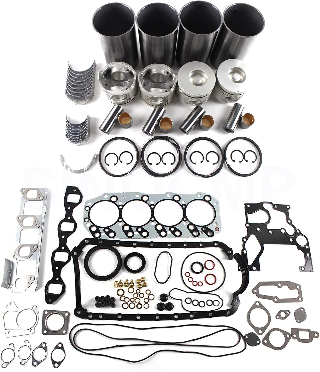 Figure 1: Overview of the SINOCMP 4JH1 4JH1TC Engine Rebuild Kit, showing all included parts such as pistons, liners, gaskets, and bearings.